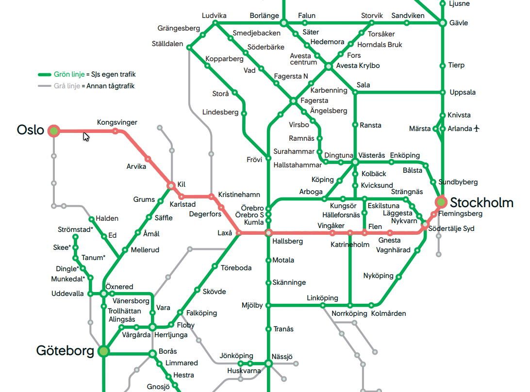 Gods och persontransporter Stockholm - Oslo, 250 - 320 km/h