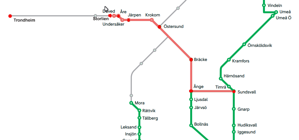 Hastigheter upp till 320 km/h kan gälla för vanliga tåglösningar. Det bör påpekas för att få effektivitet i godstransporterna, CCT Intermodal, så bör dom trafikera en egen tågbana. De terminaler som skall finnas efter banan har inte samma destinationer som för persontransporter.